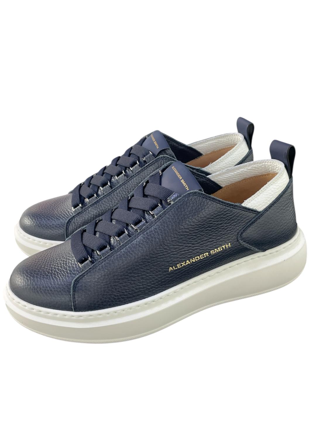 Alexander Smith sneakers uomo Wembley deconstructed in pelle blu martellata