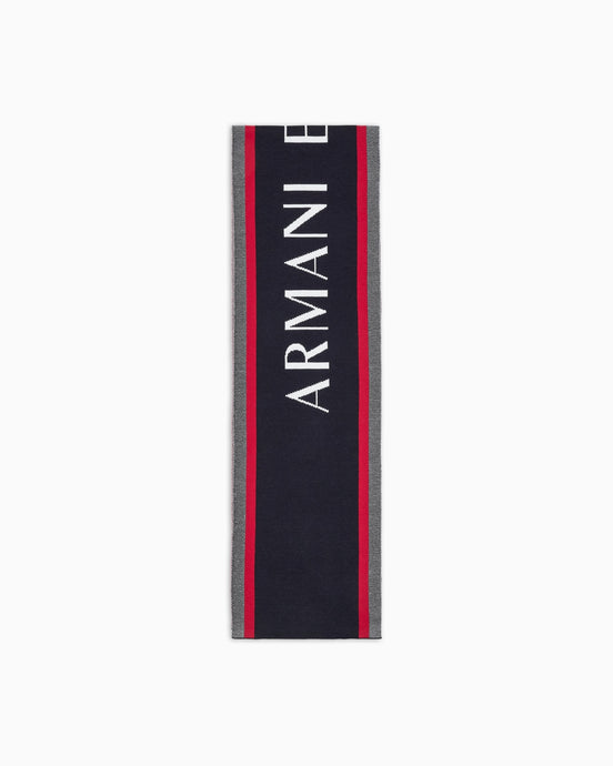 Armani Exchange Sciarpa uomo blu con bande a contrasto