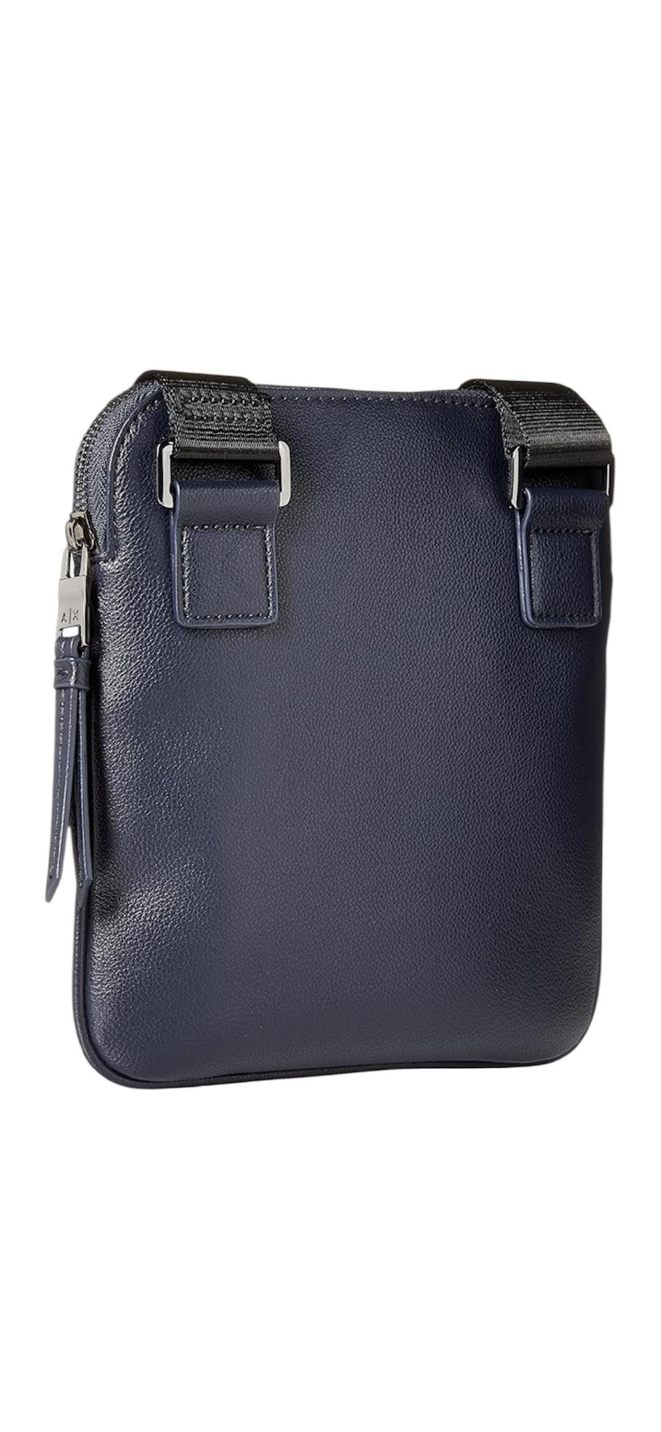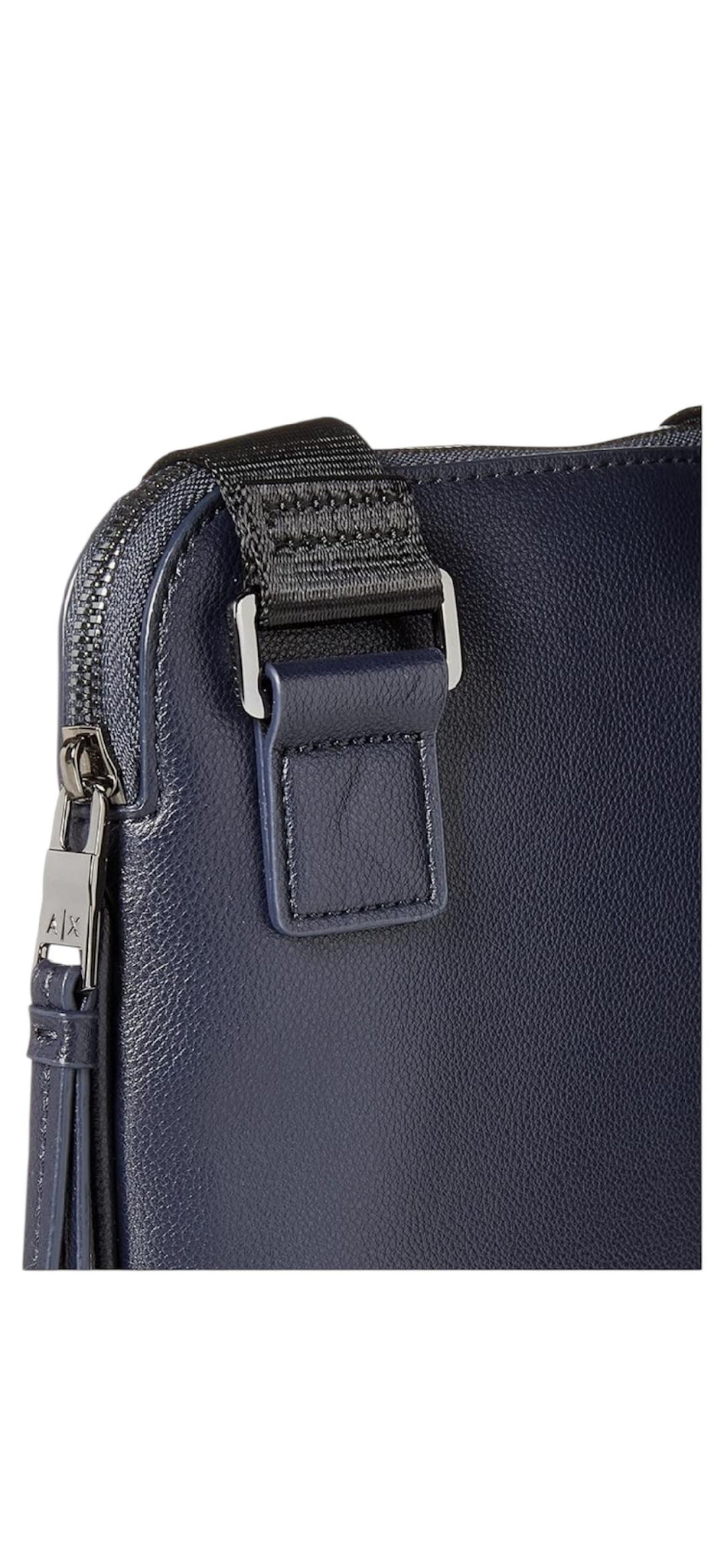 Armani Exchange tracolla flat semi-rigida blu scuro con tasca esterna