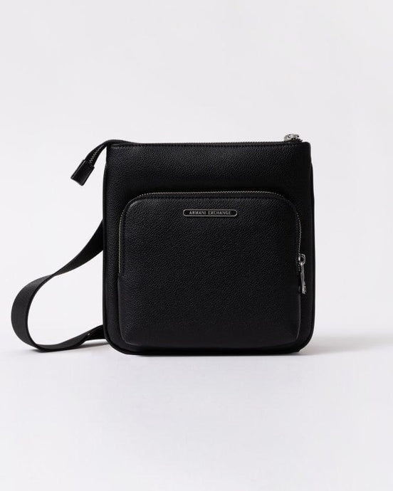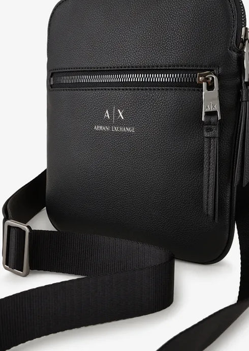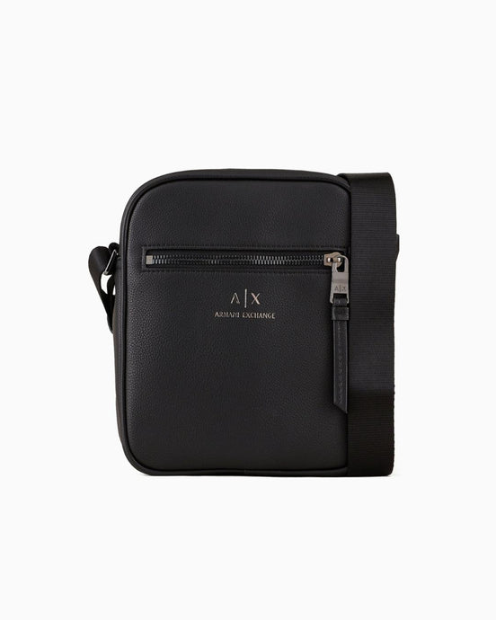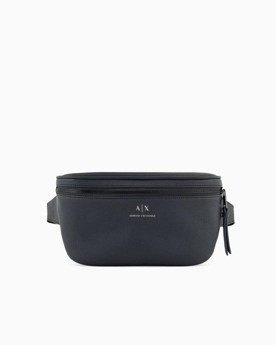Armani Exchange zaino blu con scomparti e placchetta frontale