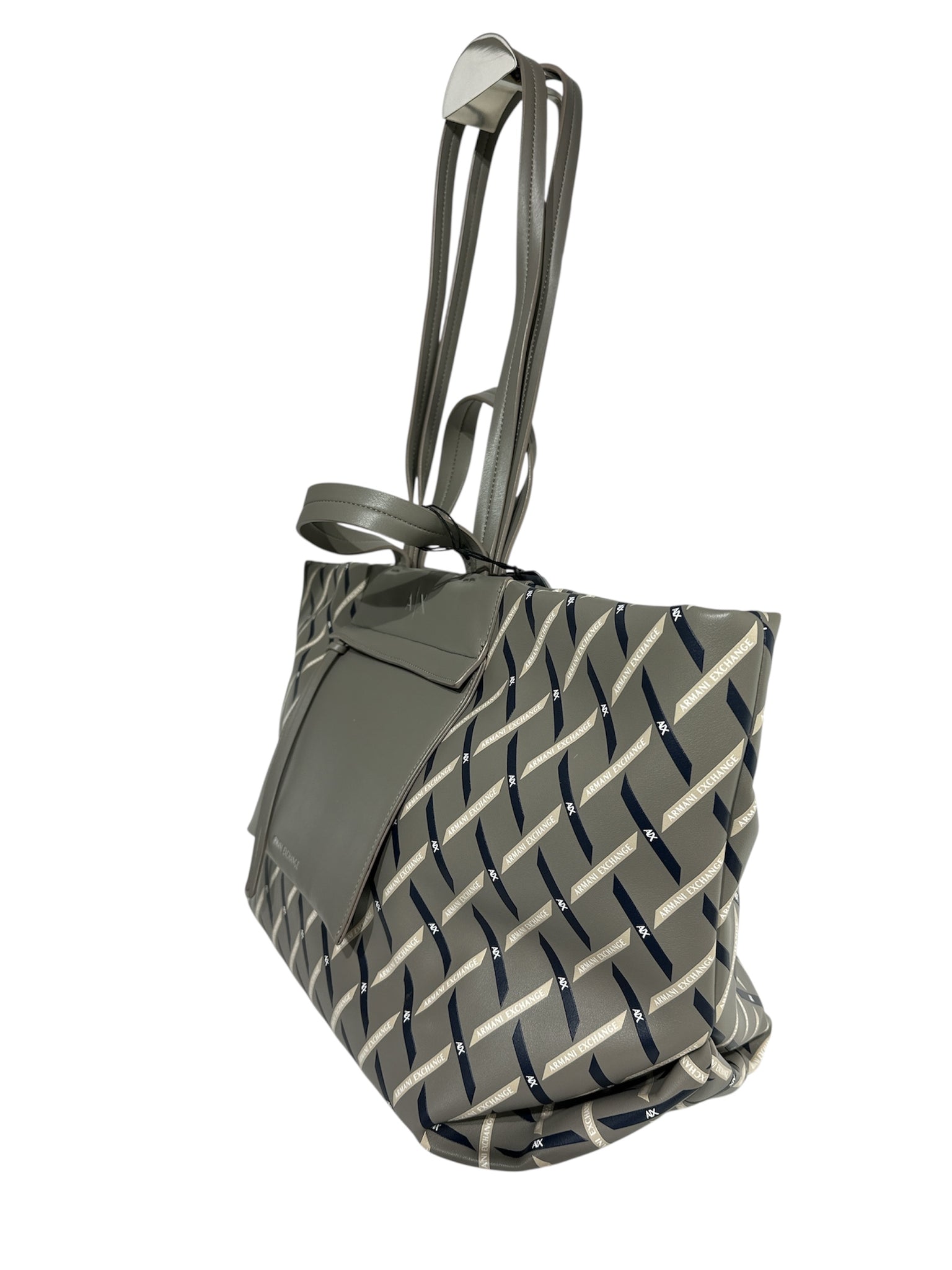 La shopper grande Armani Exchange in verde militare e nero combina eleganza e funzionalità. Presenta una tasca frontale con zip per un accesso pratico e sicuro. Il design logato dona un tocco distintivo e moderno, ideale per chi cerca un accessorio versatile per la vita quotidiana, capace di unire stile e comodità in ogni occasione.
