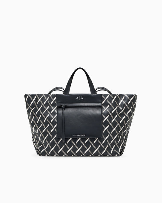 Armani Exchange Shopper media bordeaux a mano e tracolla logo all-over