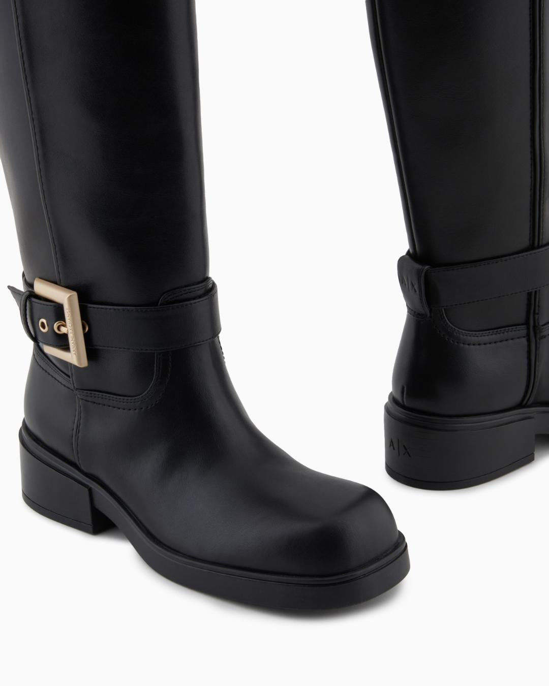 Stivali Armani Exchange con gamba alta e dettaglio fibbia oro, adatto per ogni occasione