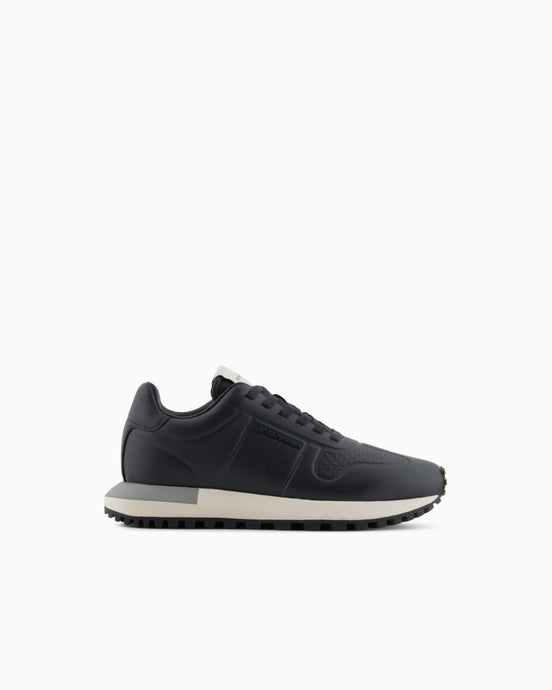 Emporio Armani Sneakers in pelle con dettagli termoformati blu