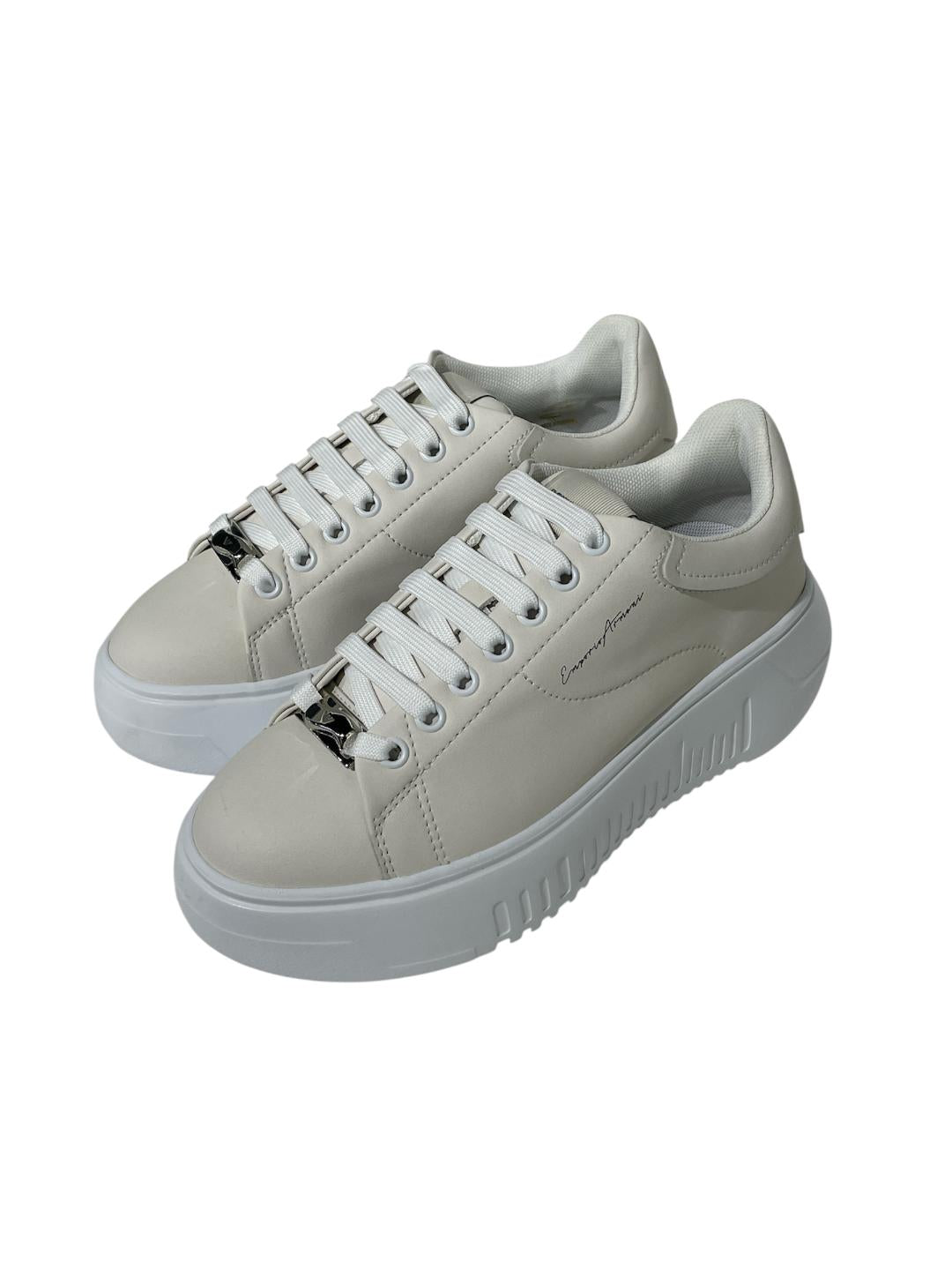 Emporio Armani Sneakers donna in pelle panna platform bianco