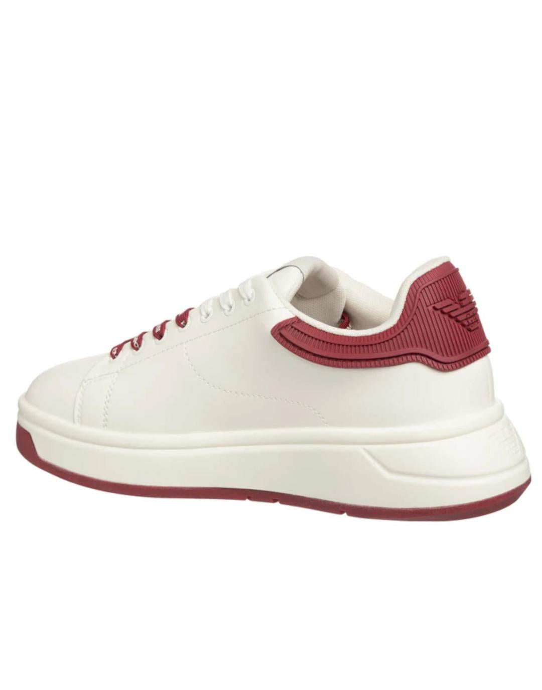 Emporio Armani Sneakers in pelle bianche con retro in gomma rosso