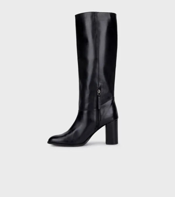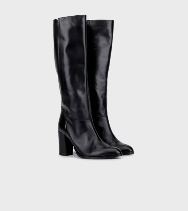 Linee pulite e carattere deciso: lo stivale alto in pelle nera definisce lo stile con un tocco di raffinato minimalismo. Dal giorno alla sera, è il dettaglio che completa ogni look.