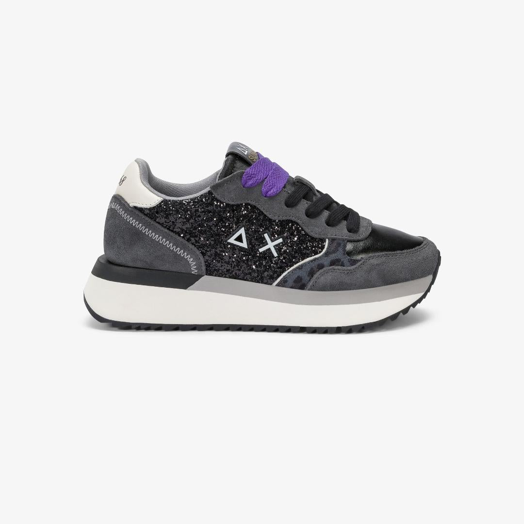 La sneaker Big Ally Glitter dall'attitudine casual chic con l'inserto sui lati tempestato di glitter luminosi. Impreziosita con dettagli logati SUN68 per una nota grintosa. La suola alta in gomma leggera sostiene i movimenti e slancia la silhouette.